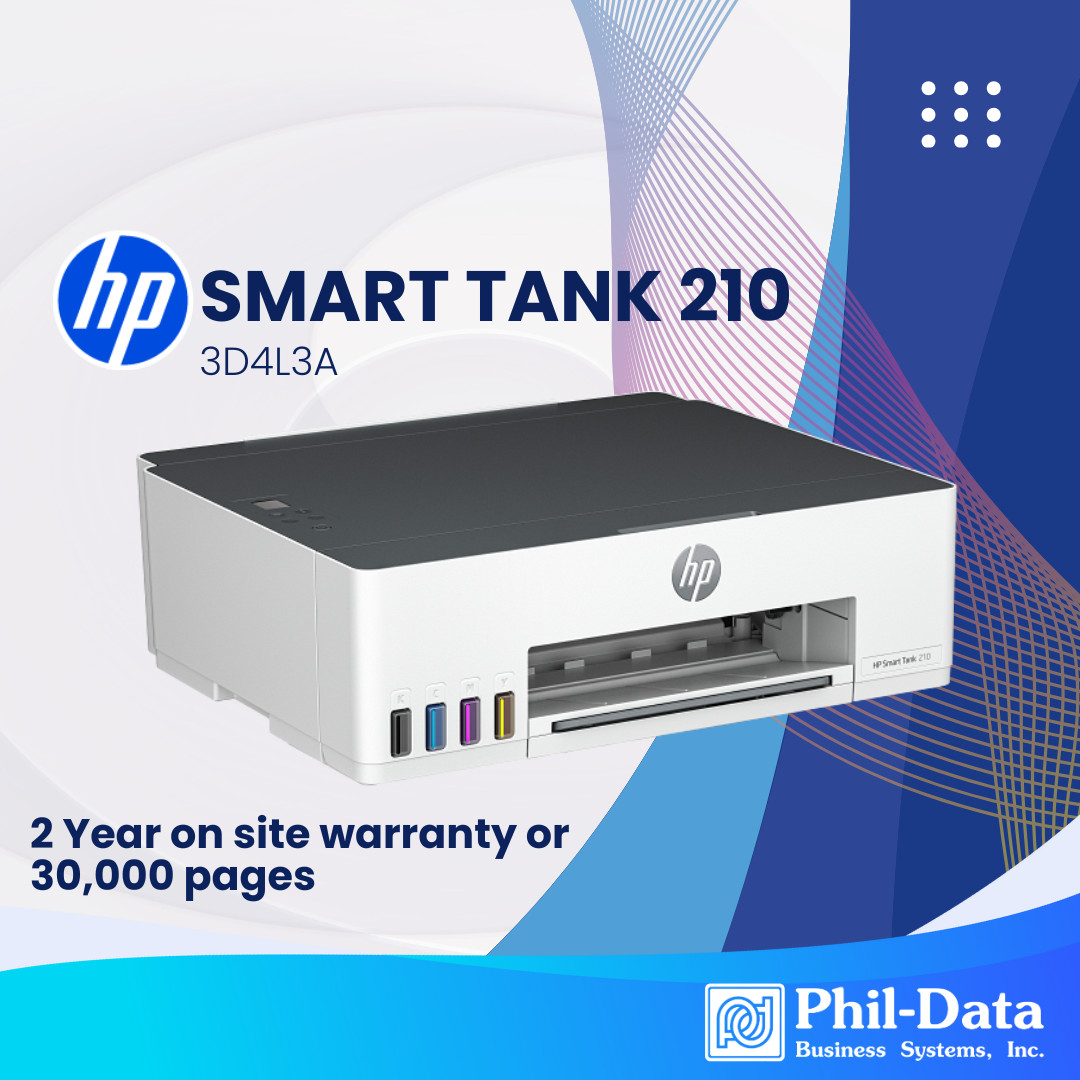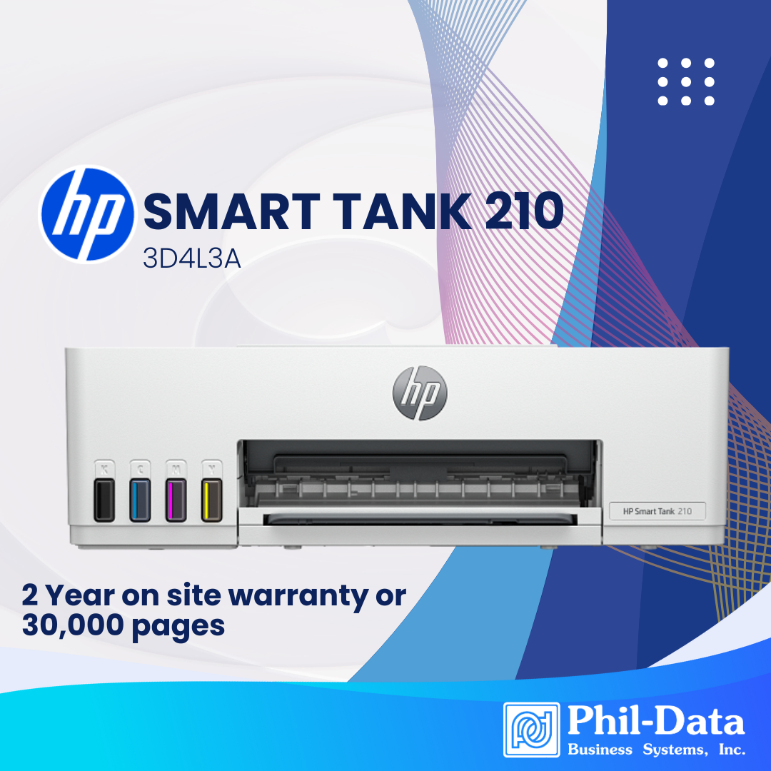 The HP Smart Tank 210 delivers efficient, everyday printing with vibrant color output and cost-saving refillable ink technology. Built for home offices, students, and small businesses, this all-in-one printer combines affordability, performance, and convenience — backed by HP’s trusted 2-year onsite warranty (or up to 30,000 pages).